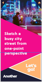 For example, if the user would like to learn to draw cityscapes, the contents would include materials such as things you would find on an alley, different kinds of people etc. If they had problems with perspective, the app would provide a perspective grid.