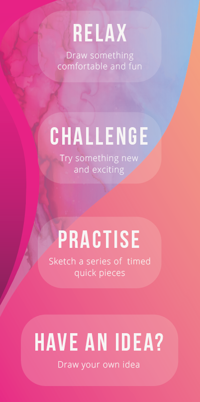 “Challenge” is something the user doesn’t usually draw, featuring a new subject or medium. It is longer and has more stages.