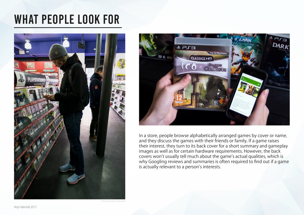 The In-Store Game Portal helps game retailers to showcase their current stock, and allows the customer to easily find out a game’s premise. When a game case is scanned at the Portal, the user interface immediately displays the game’s trailer and other relevant information. Additionally, the user can also browse the second hand store’s changing stock, and filter available games based on genre, platform or age rating.