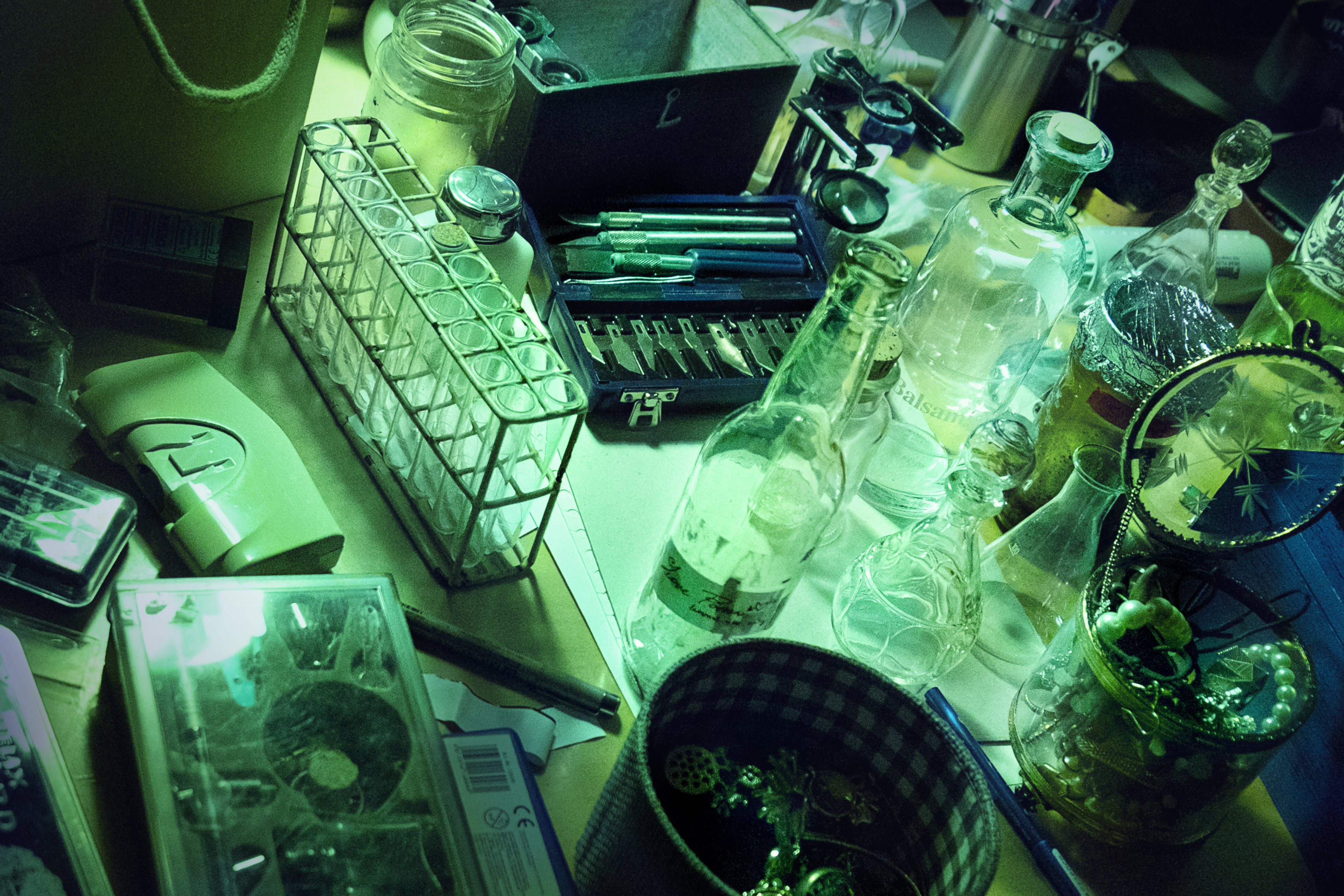 - Thematically arranged props and clues hidden within those props.
