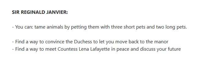 Another example is when a taming ritual the animal trainer had, consisting of petting the animal three short and two longer times, was connected to morse code in one of the clues.