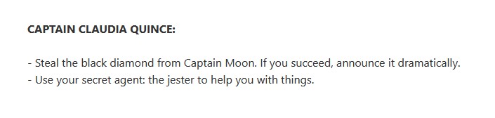 Example tasks for the player characters:
