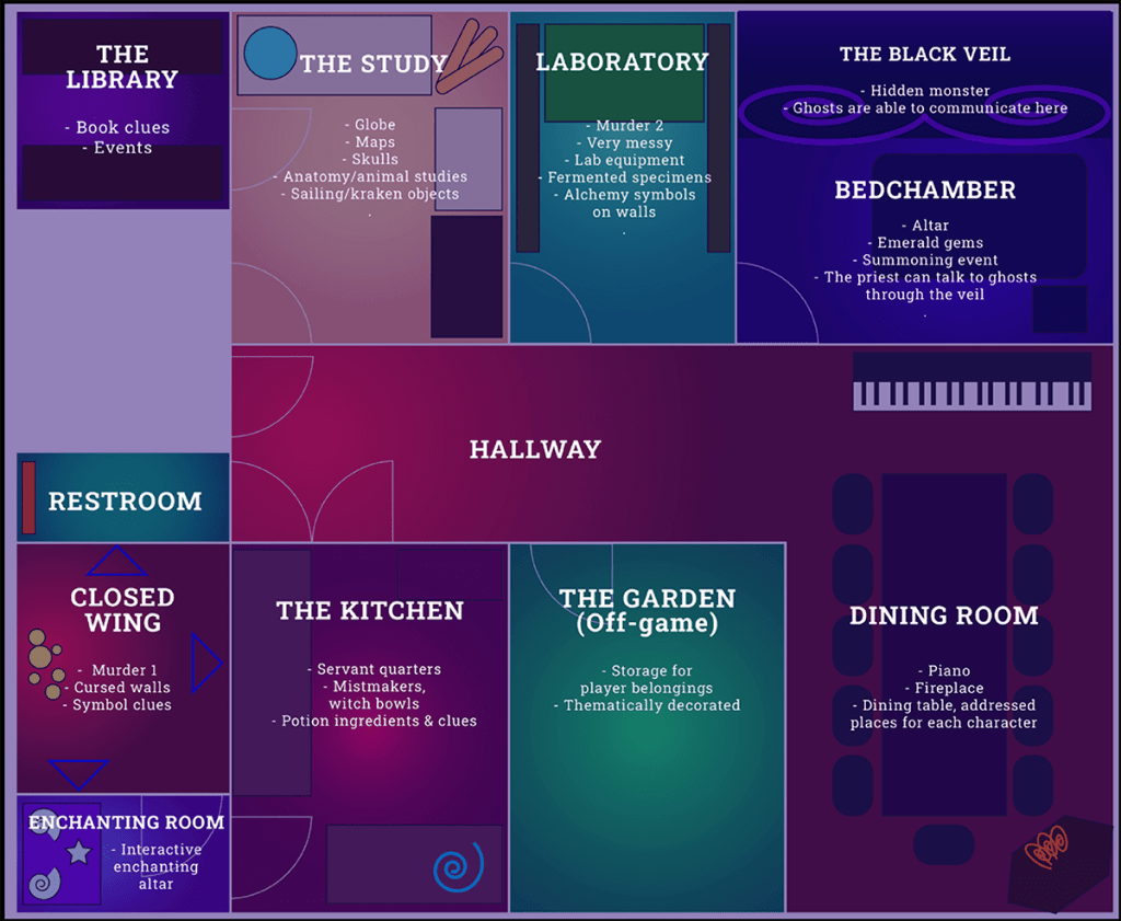 The game venue consisted of the following rooms: