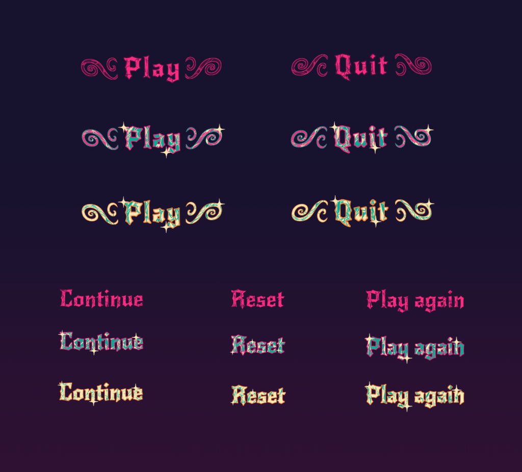 Button stage (default, hover, on-click) designs for Unfortuna.